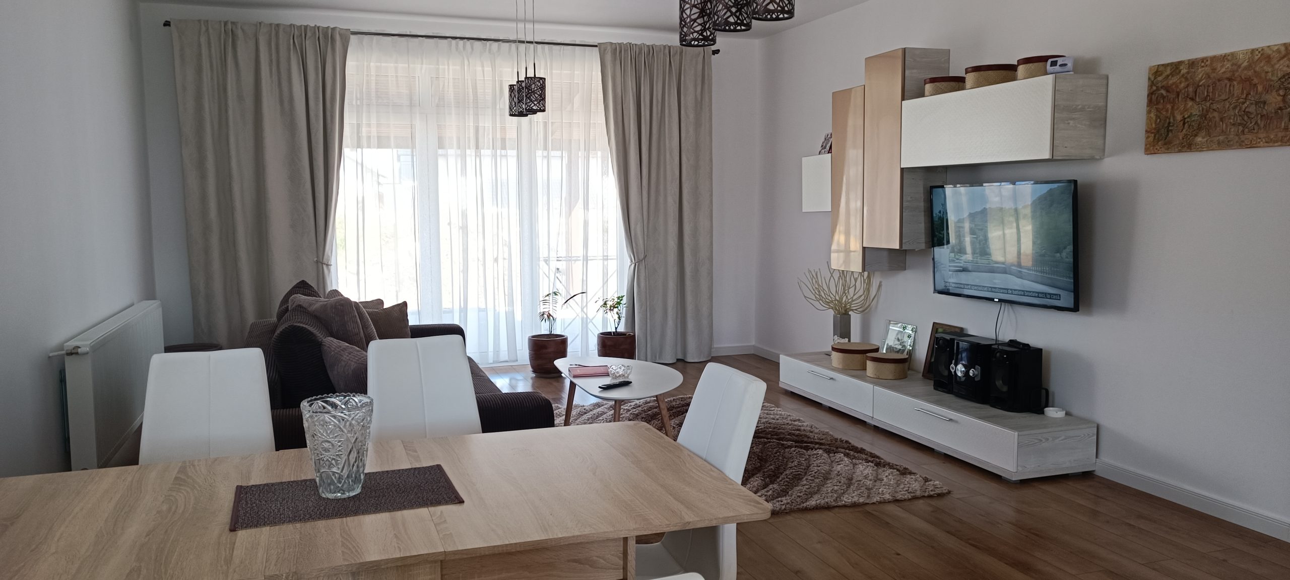 Dispune de centrala termica in condensare, geamuri termopan cu 3 randuri de sticla, usi interioare de calitate foarte buna, bai complet echipate, parchet melaminat de 12 mm trafic intens.